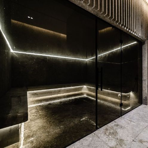 Отделка саун и хаммамов в соответствии с дизайнерскими планами, включая облицовку стен и потолков, установку освещения и акустических систем